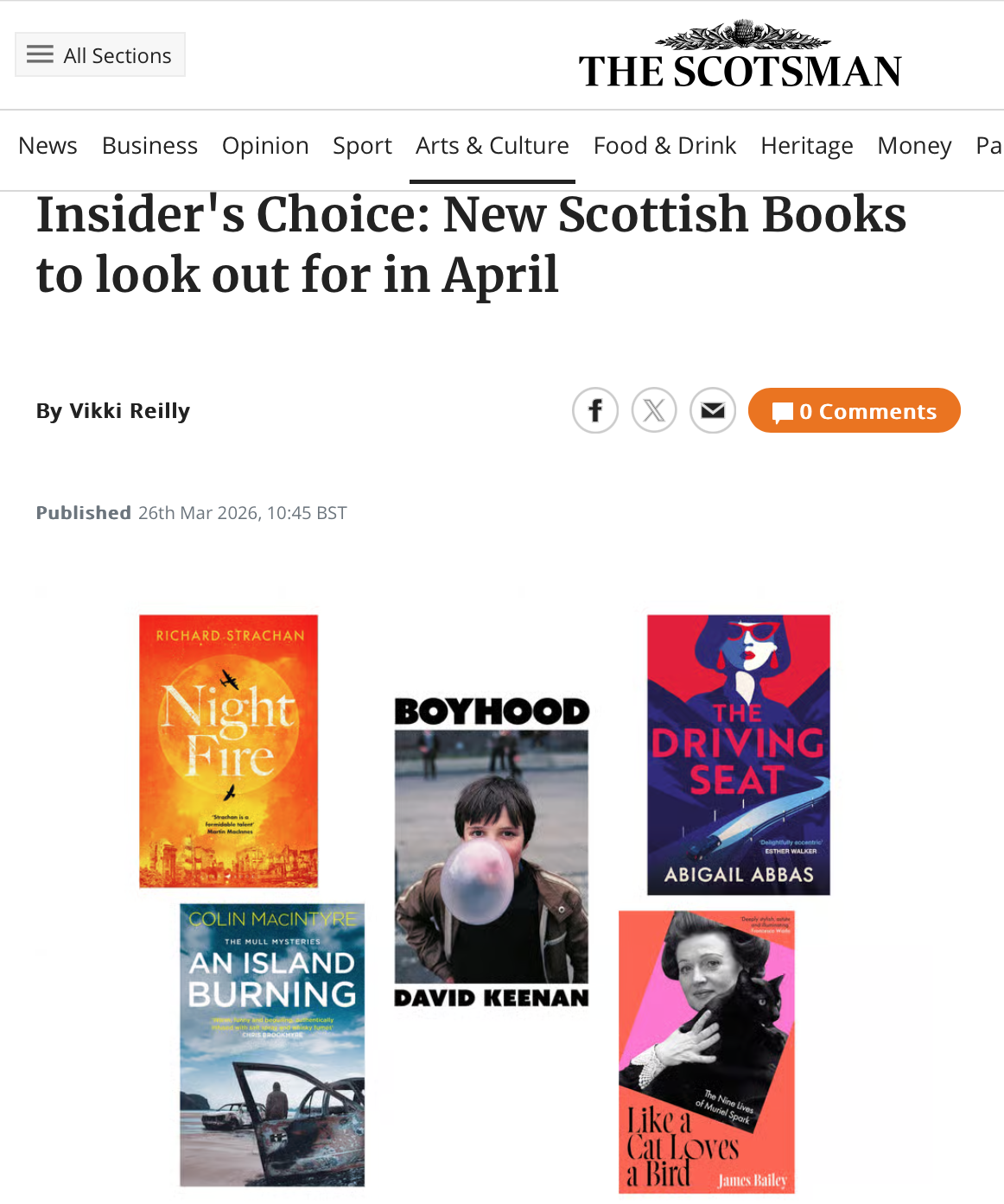 ‘AN ISLAND BURNING’ – CURRENTLY THE SCOTSMAN’S ‘INSIDER’S MONTHLY NEW BOOK CHOICE’